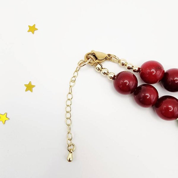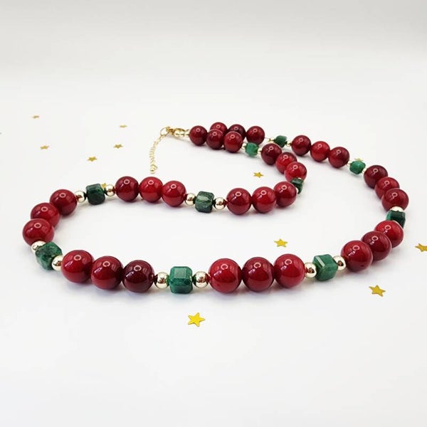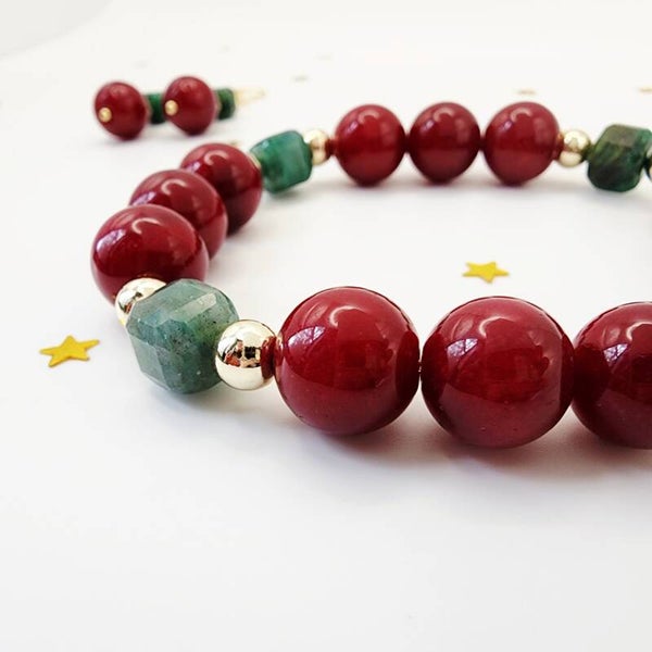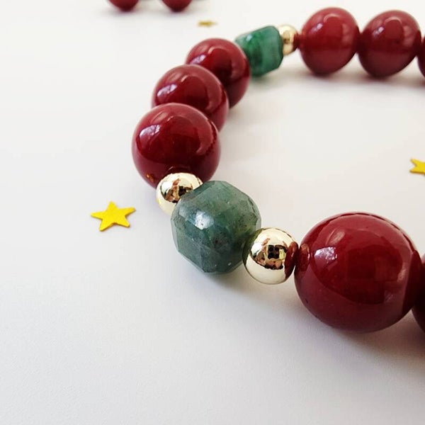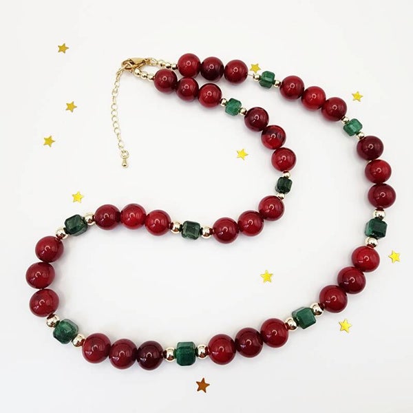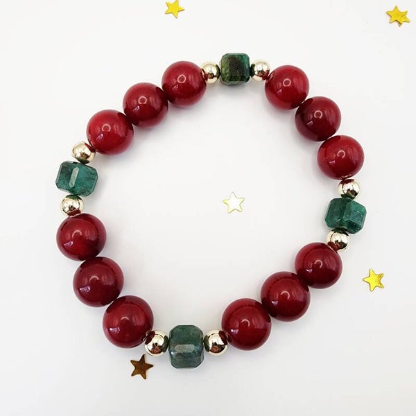Red Jade is believed to inspire vitality, confidence, and passion, helping to release negativity and promote inner strength. Emerald, the stone of love and abundance, is said to bring harmony, prosperity, and emotional balance. Together, they create a powerful blend of energy and beauty. Perfect for anyone seeking confidence and renewal.