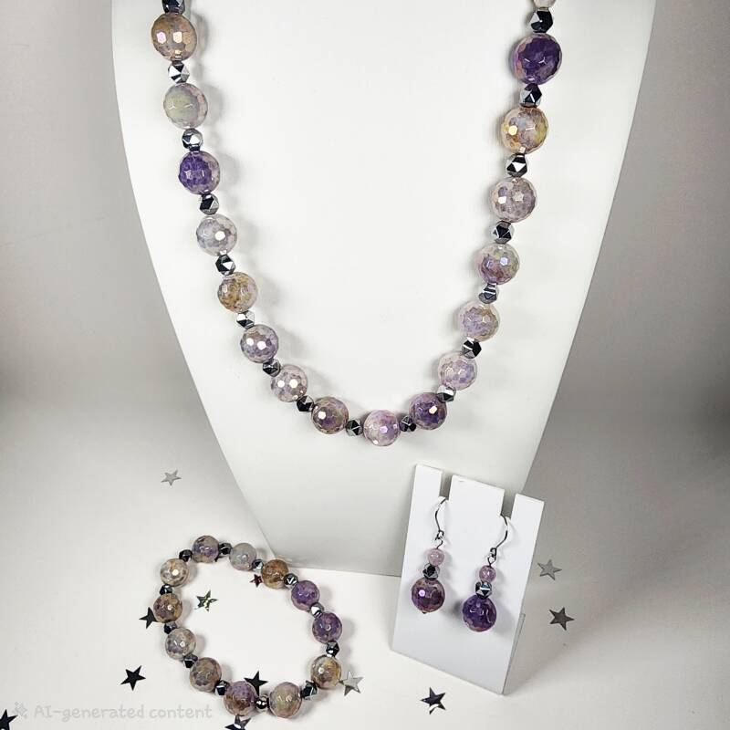 The sparkle of the faceted Purple Jade is beautifully complemented by the light-catching star-cut Hematite, creating a refined, celestial-inspired harmony that transitions effortlessly from everyday wear to special occasions. Finished with heavy duty stretch cord, this piece is designed for comfort, durability, and effortless style. Carefully handcrafted with attention to detail, it blends functional design with timeless sophistication.