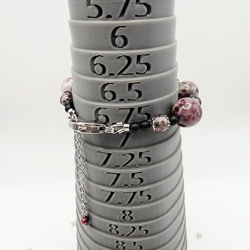 AAA Plum Tourmaline & AAA Black Onyx 7" bracelet made with a large, hypoallergenic stainless steel lobster claw clasp.