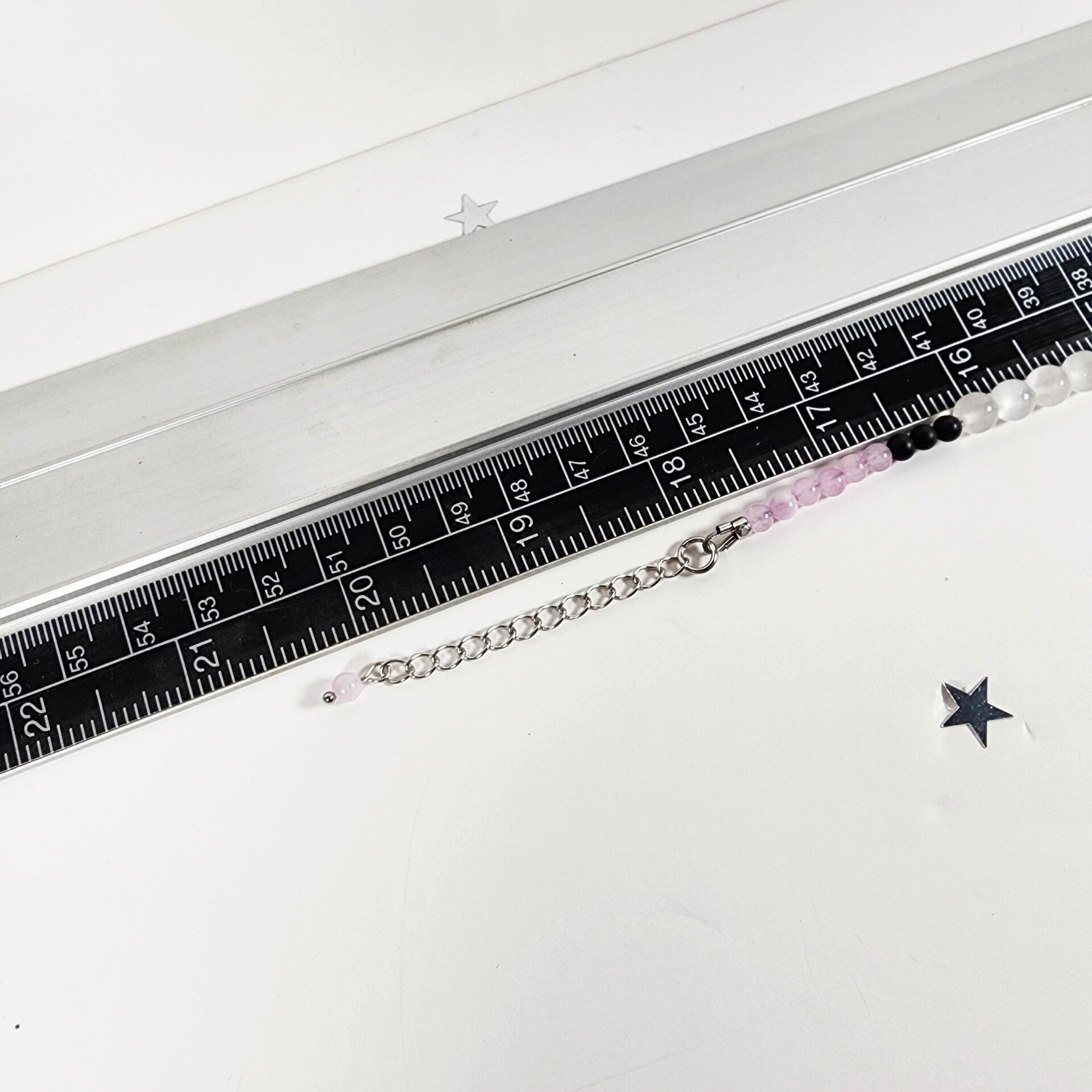 The gentle blush tones of Kunzite paired with the ethereal glow of Selenite and the deep grounding of Black Onyx create a visually striking and energetically harmonious combination. This luminous, celestial-inspired design offers a refined and elegant look that transitions beautifully from everyday wear to special occasions.