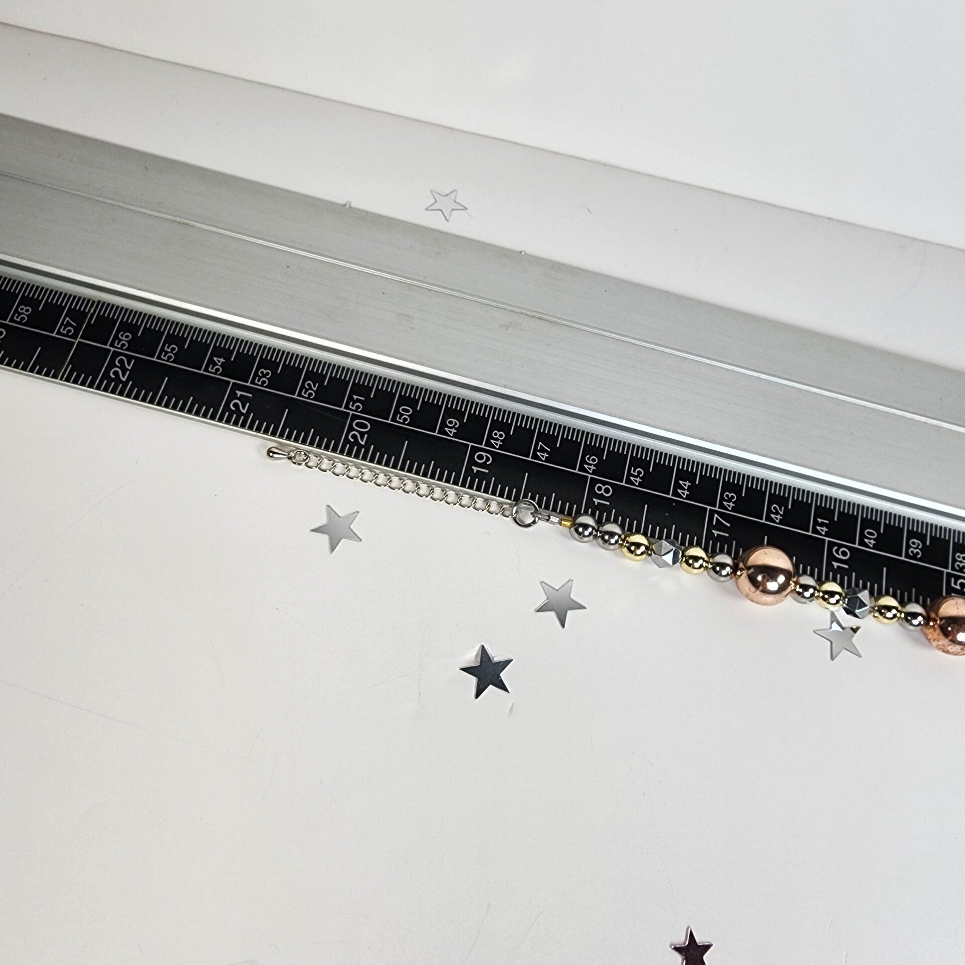 Make a statement with this luxe, handcrafted 18.5" necklace featuring soft metallic rose gold and silver star-cut Hematite beads paired with premium 14K gold filled accents and sturdy stainless steel components. The warm rosy glow blends seamlessly with gold tones for an upscale, modern look you can wear day or night.