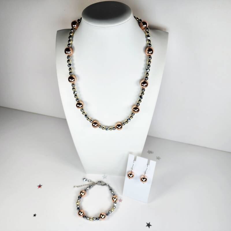Rose Gold Hematite Pair of Dangle Earrings, Stainless Steel