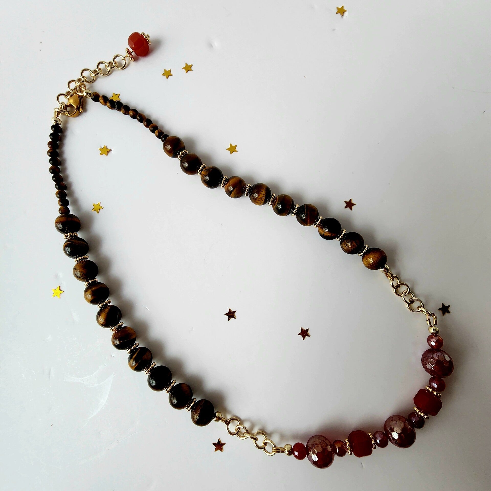 Mystic Carnelian & Tiger’s Eye Necklace, 18K Gold Filled Chain