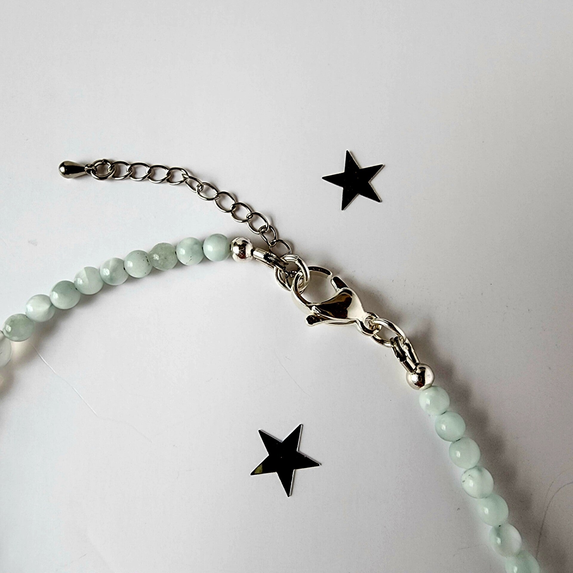 • Avoid prolonged exposure to water, perfume, lotions, and household chemicals, as these can dull gemstone surfaces and weaken stringing materials.
