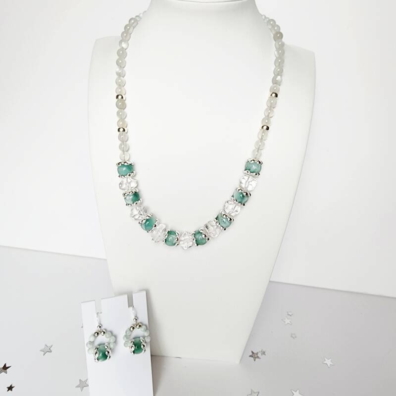 • Avoid prolonged exposure to water, perfume, lotions, and household chemicals, as these can dull gemstone surfaces and weaken stringing materials.