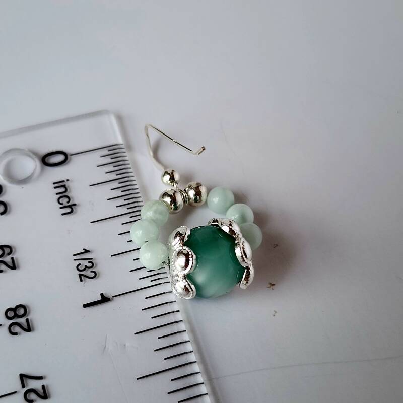 Luminous and softly radiant, this AA Green Moonstone pair of looped dangle earrings is handcrafted with polished sterling silver components for a clean, timeless look. The gentle green flash of Moonstone creates an elegant design that feels light, calming, and refined. This pair features a luminous blend of carefully selected natural gemstones with bright sterling silver earwires, and is an expression of quiet luxury and natural beauty.